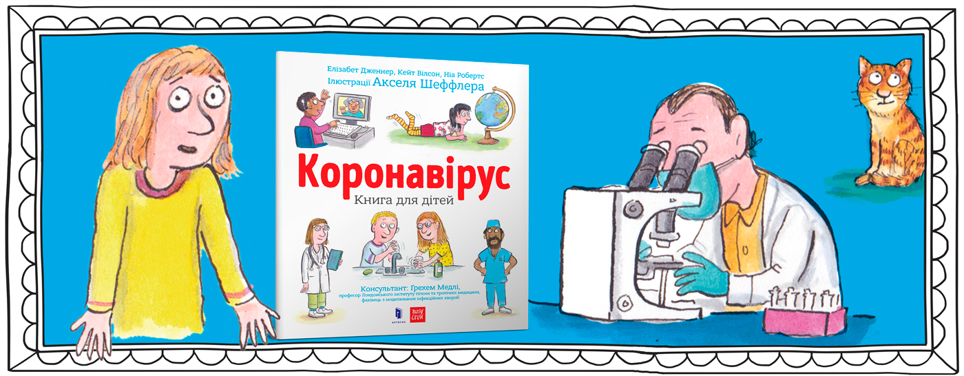 А допомогала розбиратись з цім вірусом дуже цікава книга"Короновірус". Простою мовою вона відповідає на запитання, які цікавлять дітей віком від 5 до 9 років: «Що таке коронавірус? Як він передається? Що станеться, якщо його підхопити? Чи є ліки від коронавірусу? Чому деякі заклади, в які ми зазвичай ходимо, закриті?»